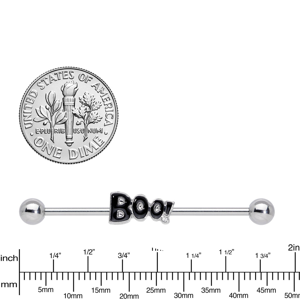 14 Gauge Clear Gem Black Boo Halloween Industrial Barbell 38mm