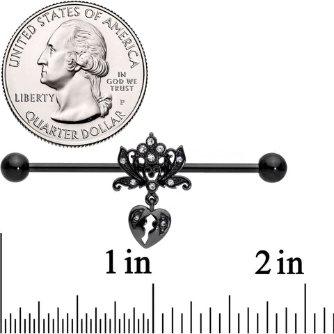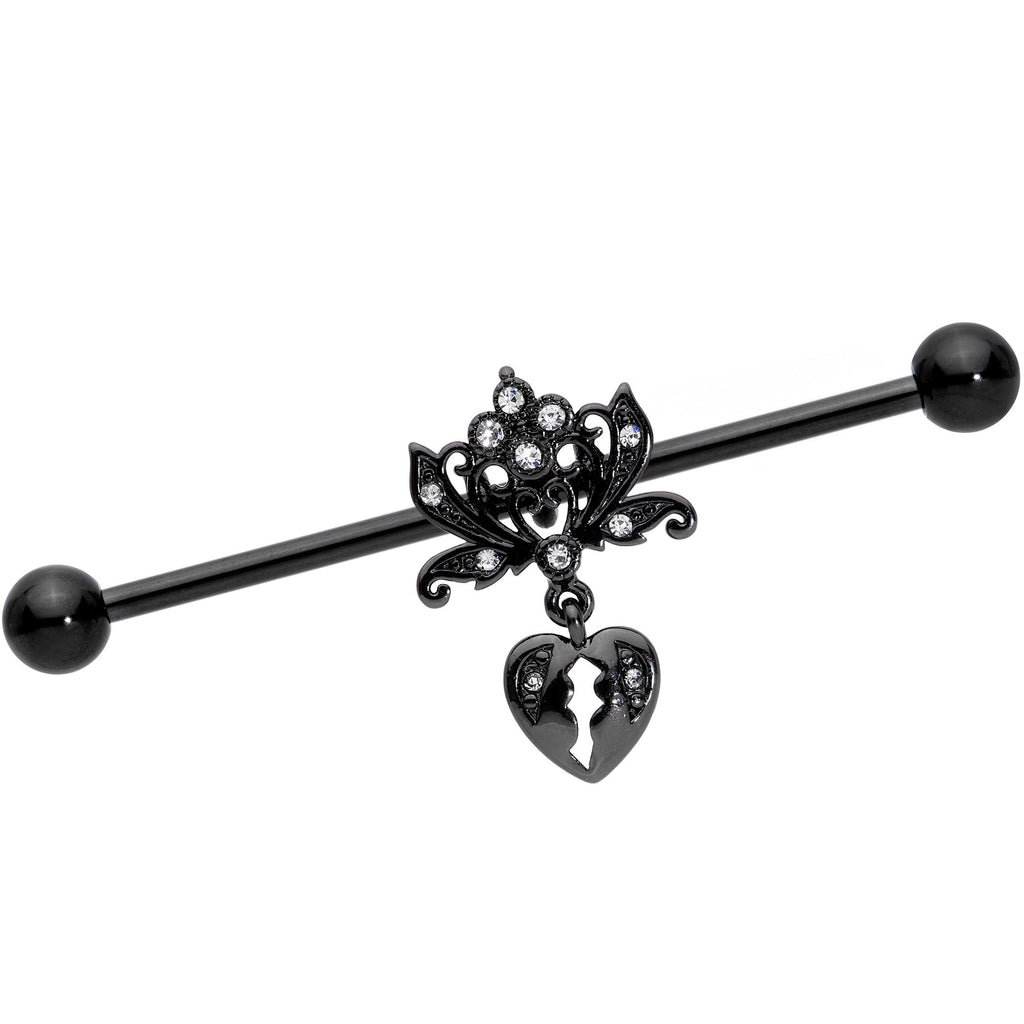 14 Gauge Clear Gem Black Heart Lock Lotus Industrial Barbell 38mm