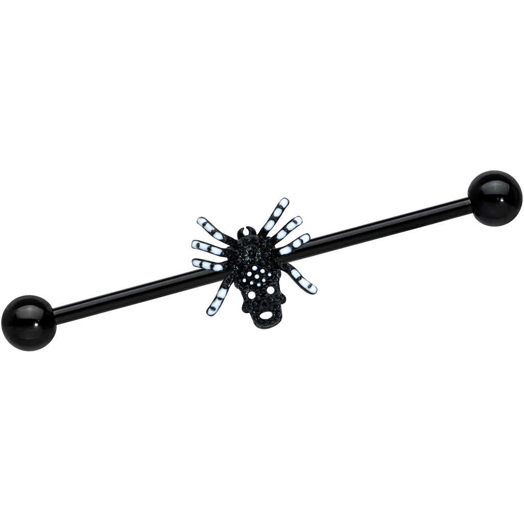 14 Gauge Clear Gem Black Skull Spider Halloween Industrial Barbell 38mm