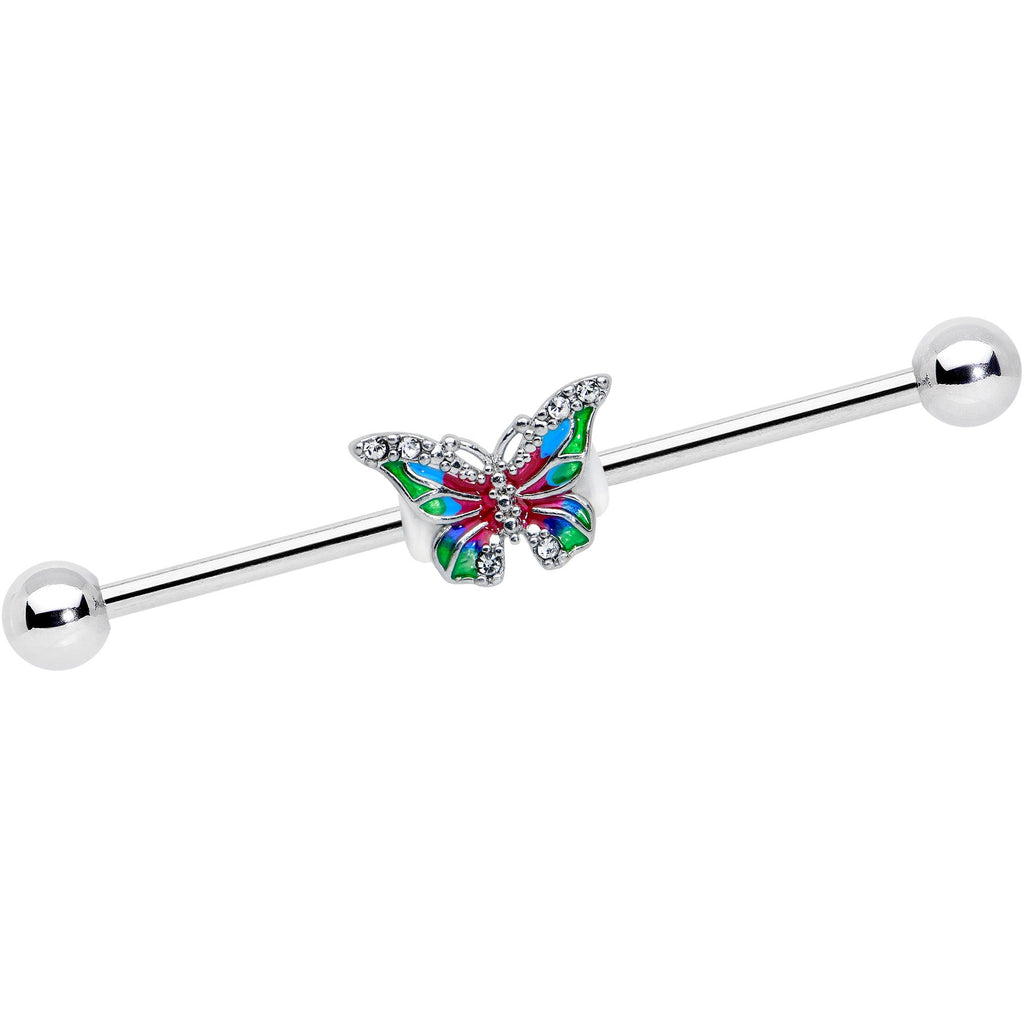 14 Gauge Clear Gem Bright Beauty Butterfly Industrial Barbell 38mm