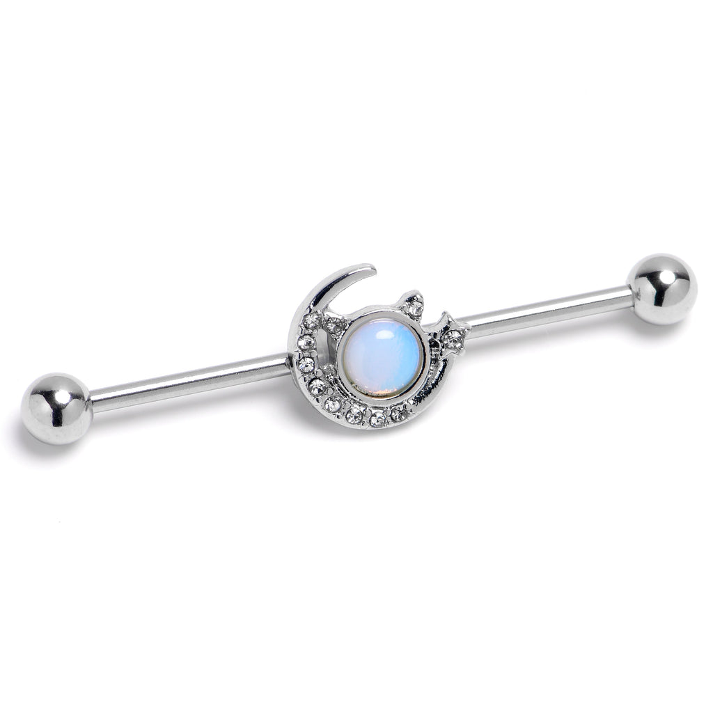 14 Gauge Clear Gem Crescent Moon Star Heavenly Industrial Barbell 38mm