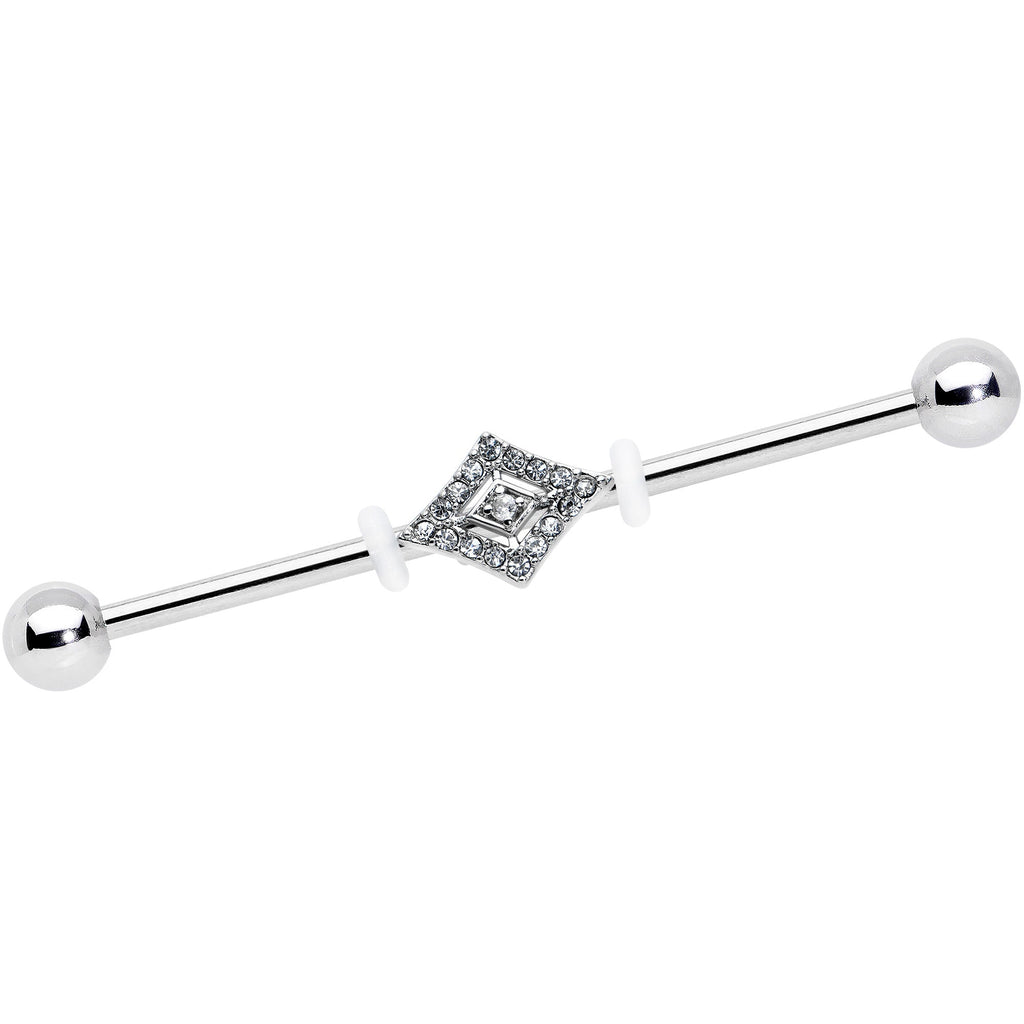 14 Gauge Clear Gem Double Rhombus Deco Industrial Barbell 38mm