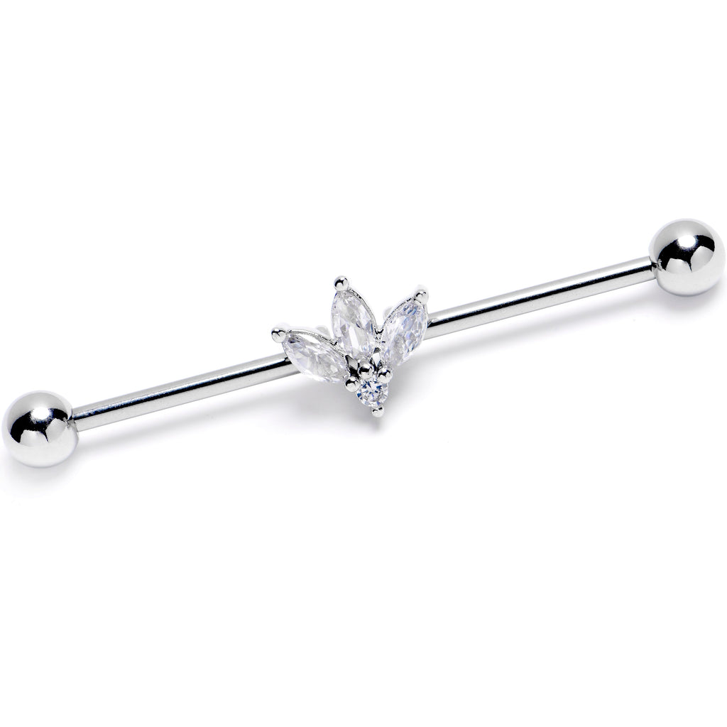 Get yourself a fashion fanclub with this 14 gauge helix barbell. It's made with a 1 1/2 inch 316L surgical grade stainless steel straight barbell with 5mm ball ends. It features a trio of clear gems that resembles a fan and they are tipped with a small clear gem for added style. You can even slide it up and down the length of the barbell for the perfect look. You'll be a fan of this fashionable fan barbell earring forever.Specifications