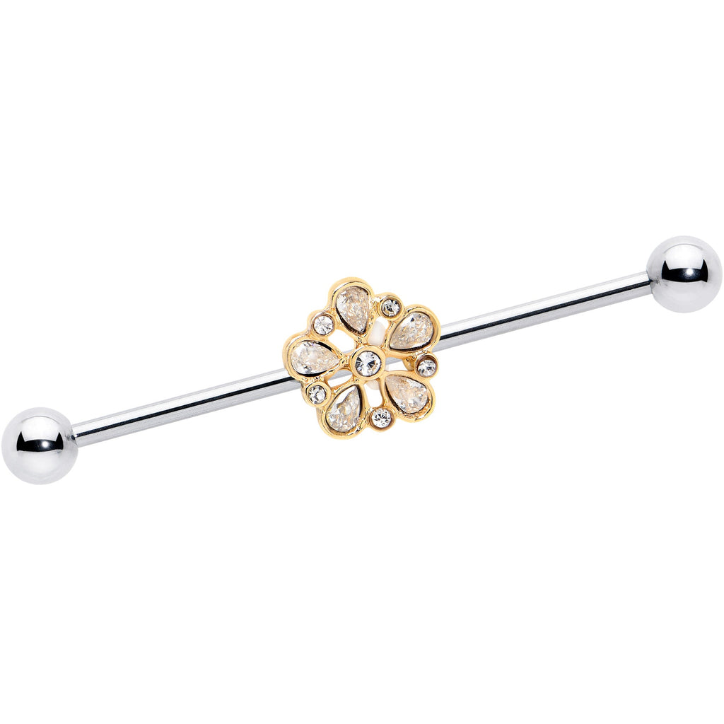 14 Gauge Clear Gem Filigree Flower Fantasy Industrial Barbell 38mm