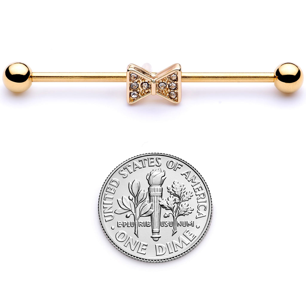 14 Gauge Clear Gem Gold Tone Bow Tie Industrial Barbell 38mm