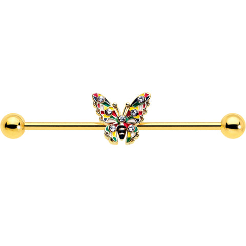 14 Gauge Clear Gem Gold Tone Color Block Butterfly Industrial Barbell 38mm