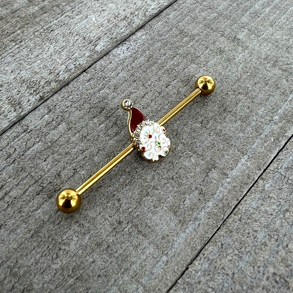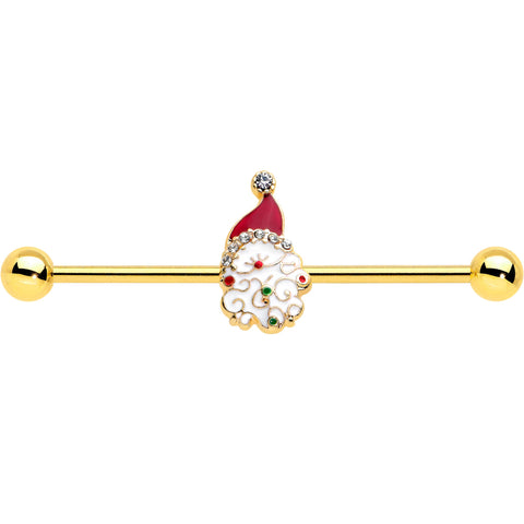 14 Gauge Clear Gem Gold Tone Decorated Santa Holiday Industrial Barbell 38mm