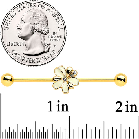 14 Gauge Clear Gem Gold Tone Feed Bee Flower Industrial Barbell 38mm