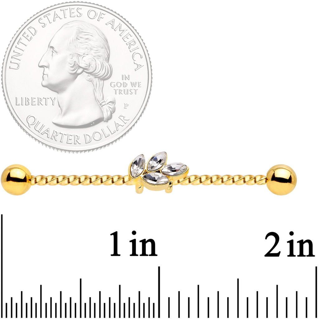 14 Gauge Clear Gem Gold Tone Leaf Industrial Barbell 38mm