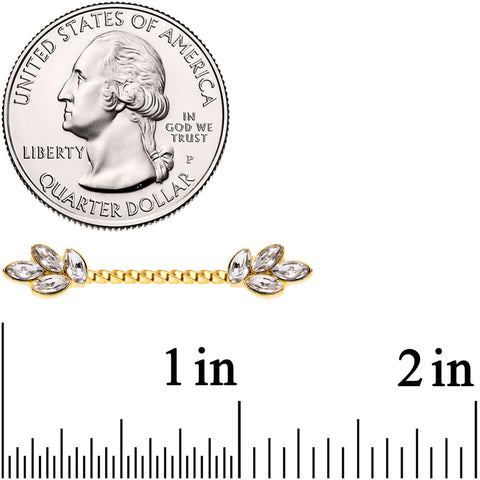 14 Gauge Clear Gem Gold Tone Leaves Twisted Barbell Nipple Ring Set
