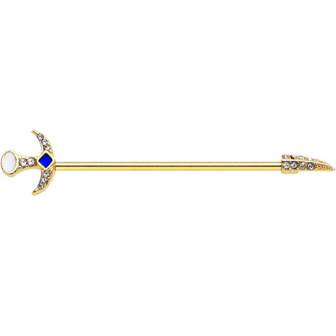 14 Gauge Clear Gem Gold Tone Sabre Sword Industrial Barbell 38mm