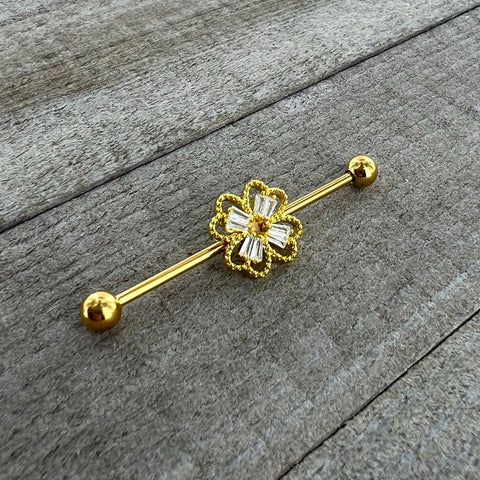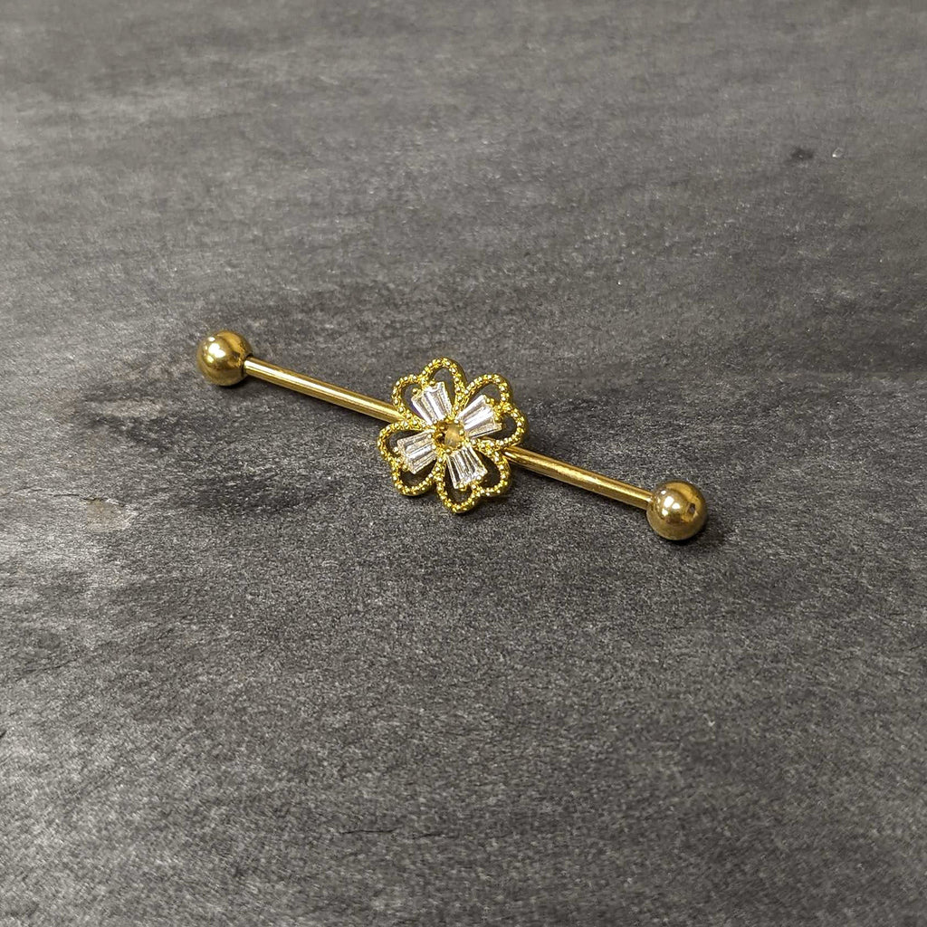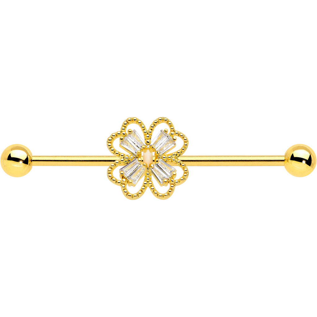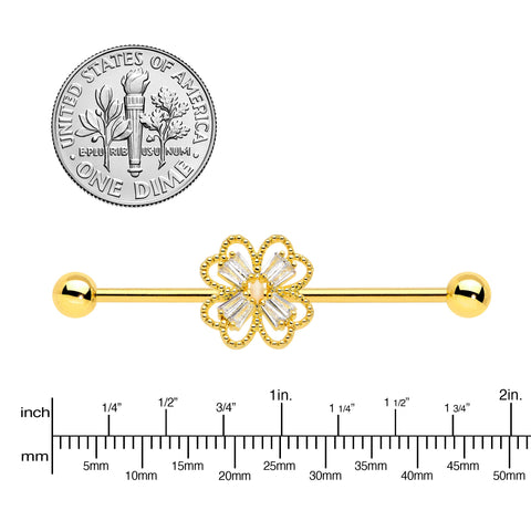14 Gauge Clear Gem Gold Tone Textured Cross Industrial Barbell 38mm
