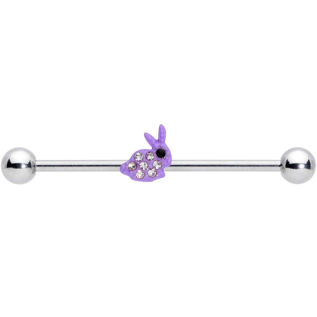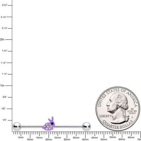 14 Gauge Clear Gem Purple Easter Bunny Industrial Barbell 38mm