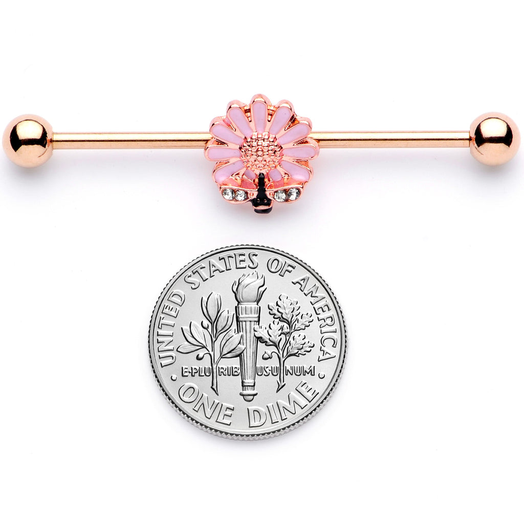 14 Gauge Clear Gem Rose Gold Tone Flower Bee Industrial Barbell 38mm