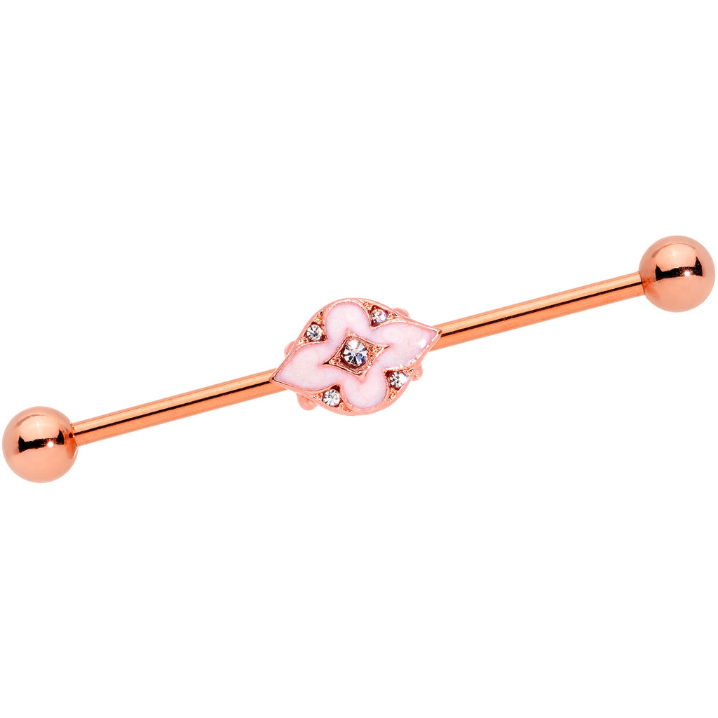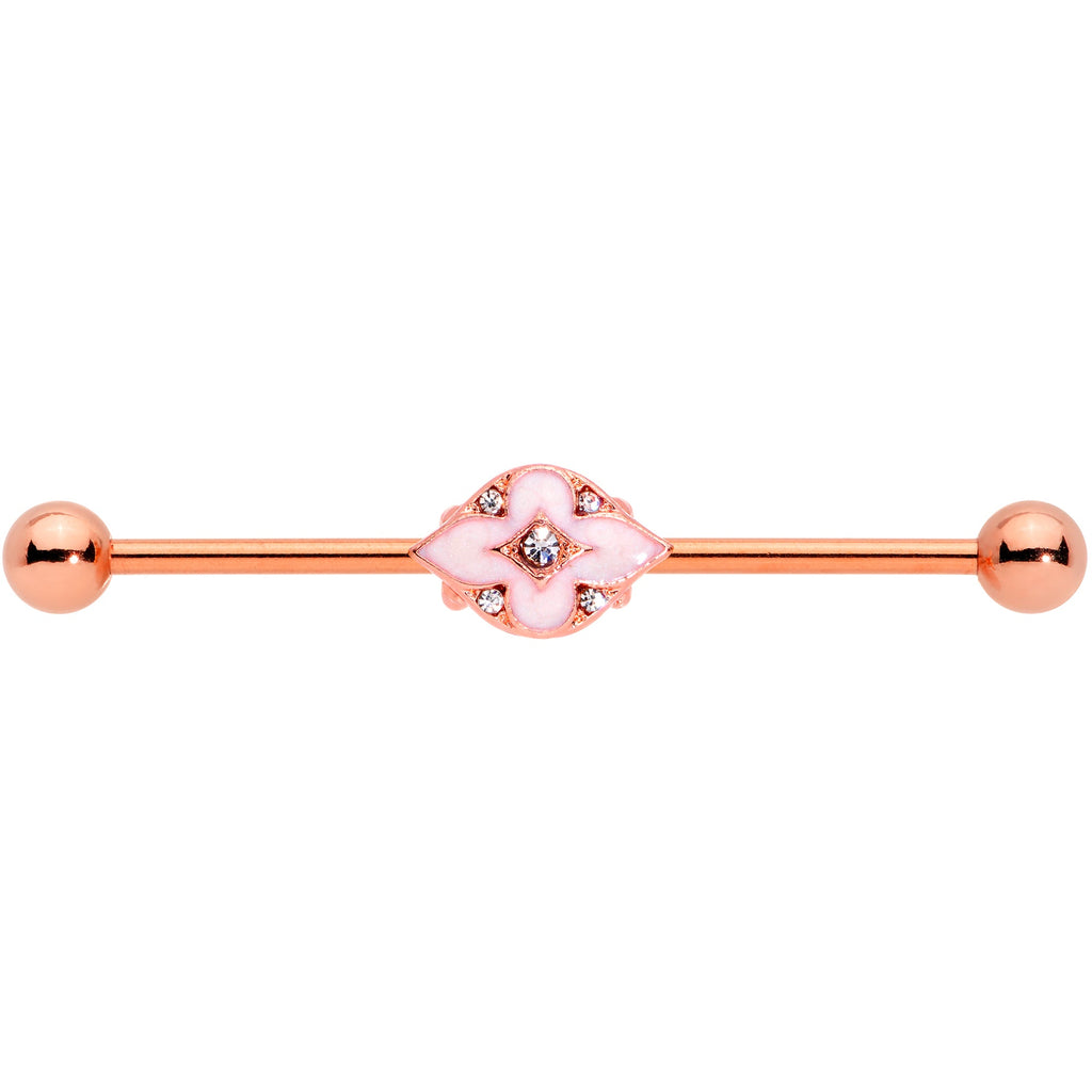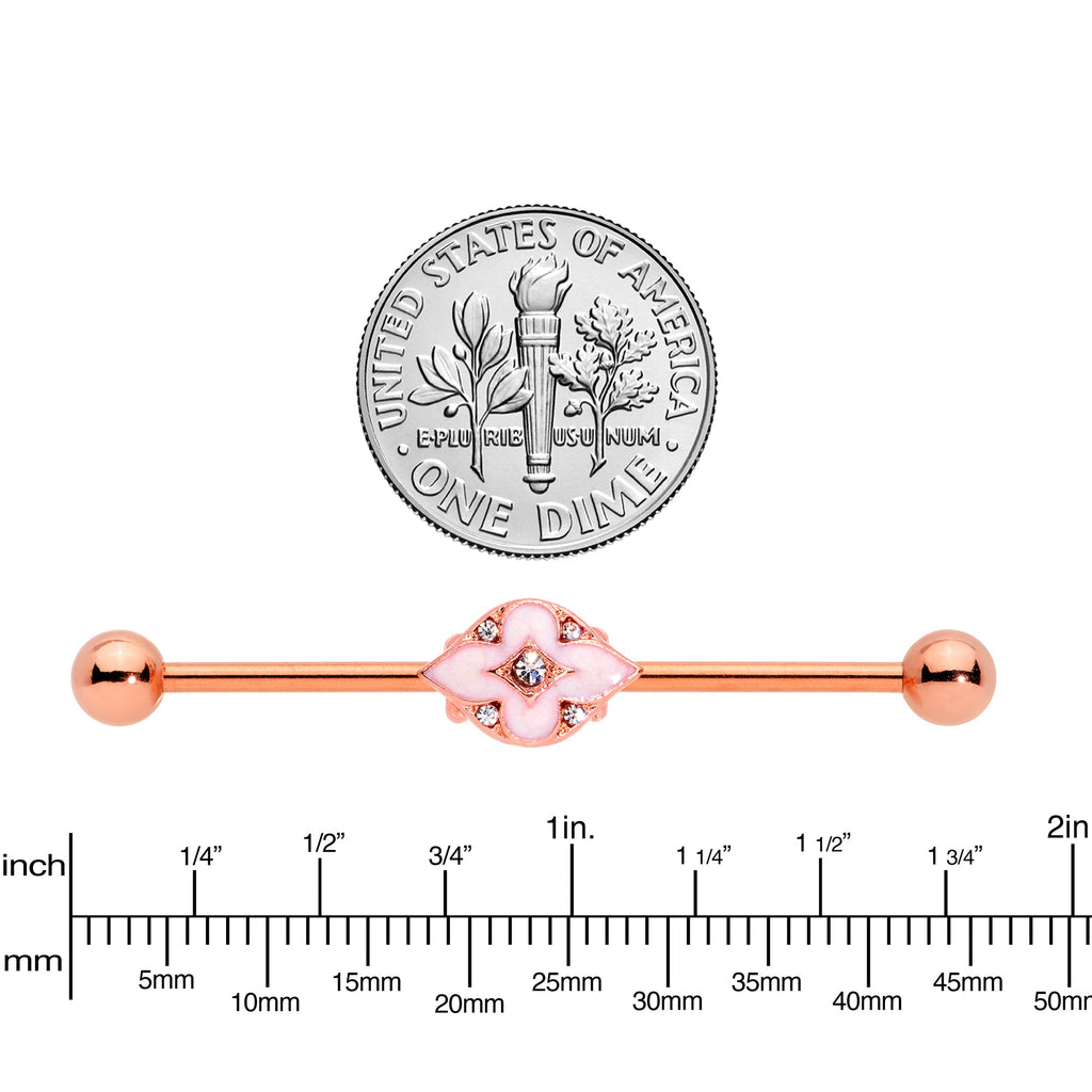 14 Gauge Clear Gem Rose Gold Tone Pink Cross Industrial Barbell 38mm