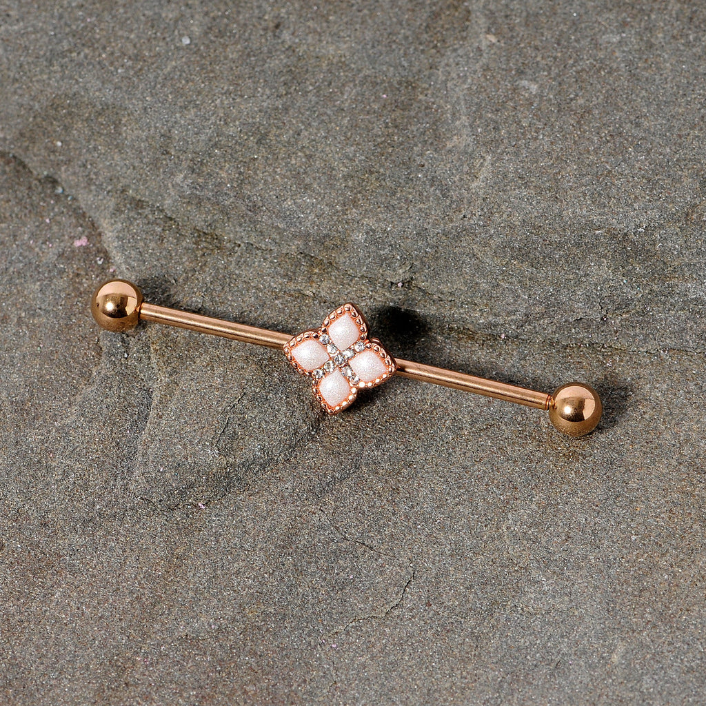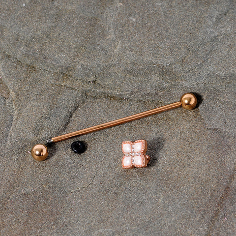 14 Gauge Clear Gem Rose Gold Tone Renaissance Industrial Barbell 38mm