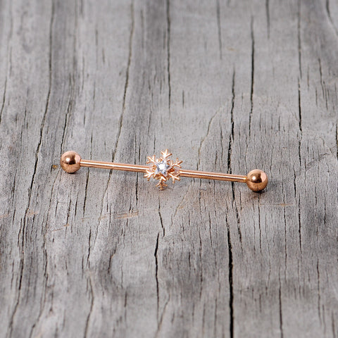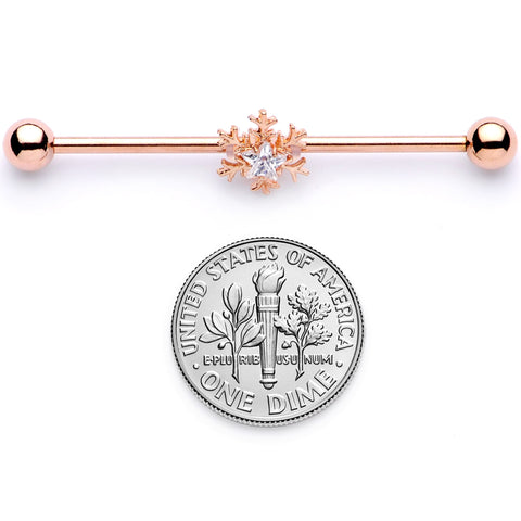 14 Gauge Clear Gem Rose Gold Tone Snowflake Industrial Barbell 38mm