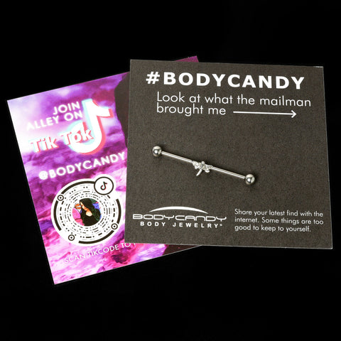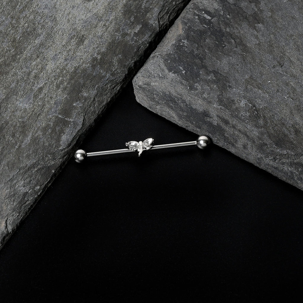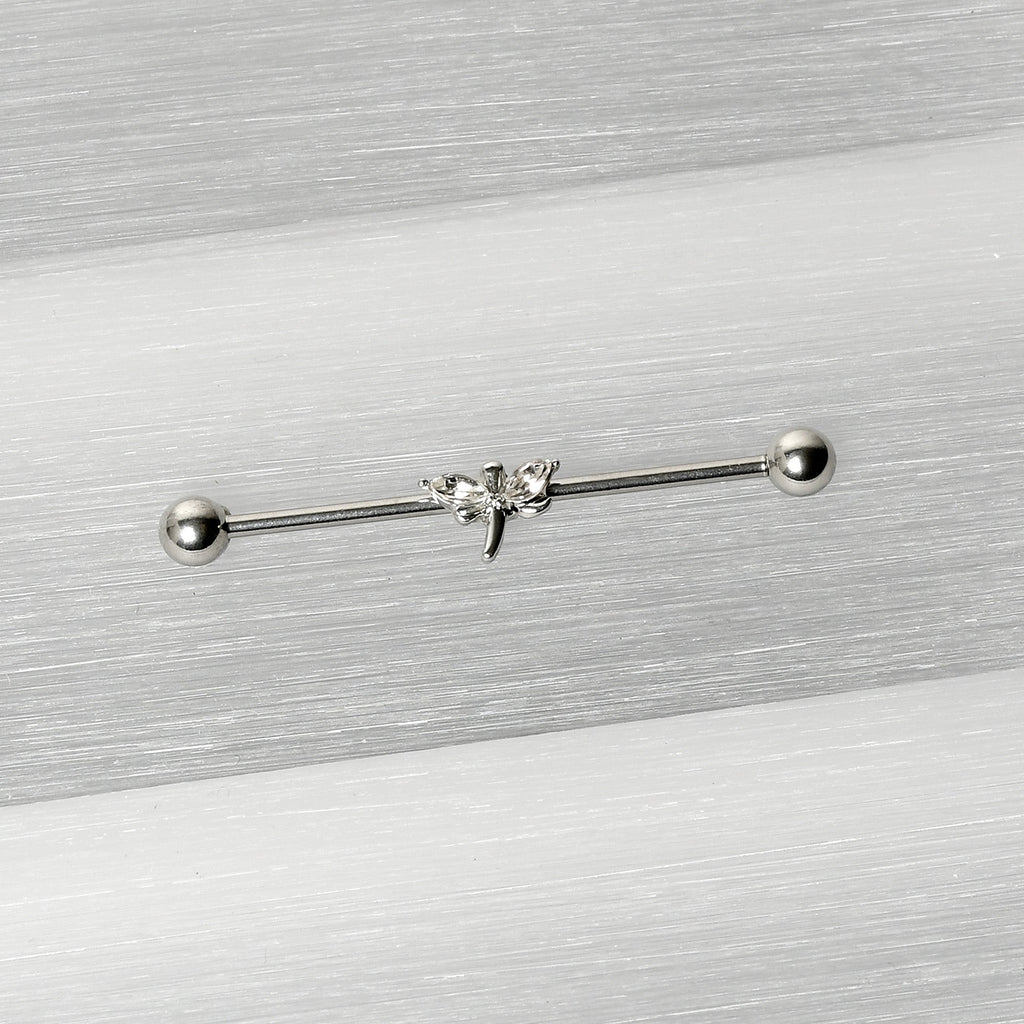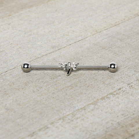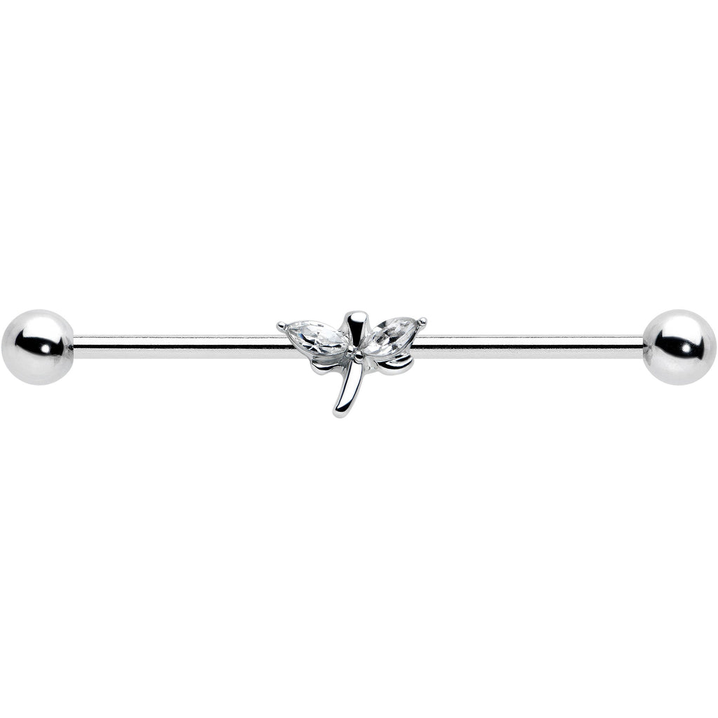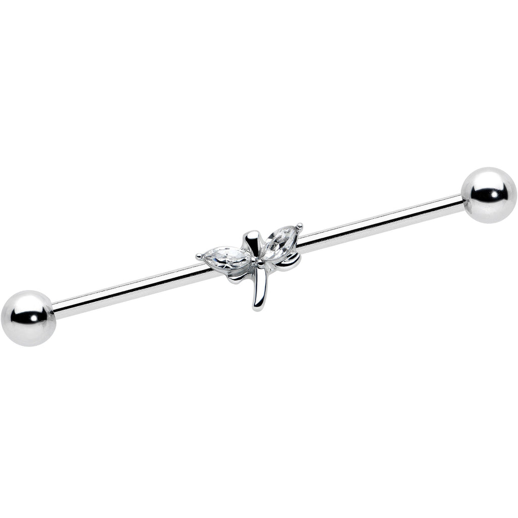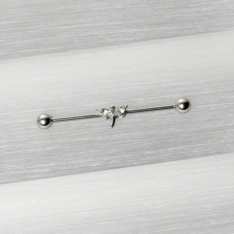 14 Gauge Clear Gem Simple Stylized Dragonfly Industrial Barbell 38mm