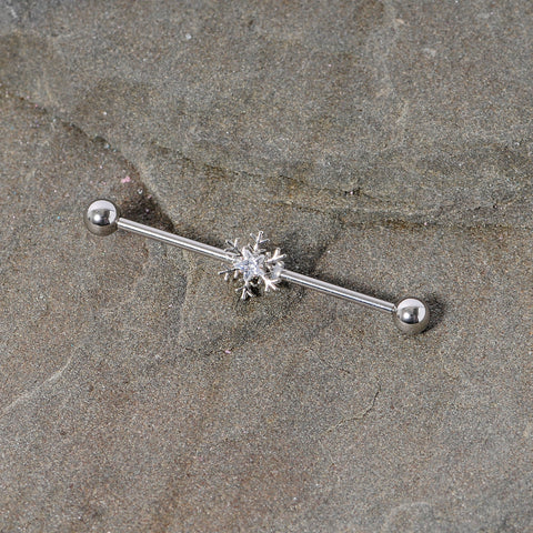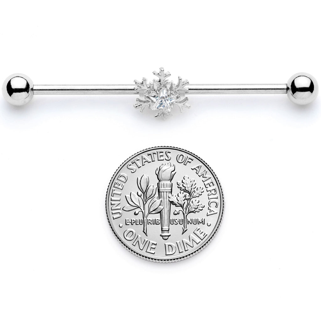 14 Gauge Clear Gem Snowflake Industrial Barbell 38mm