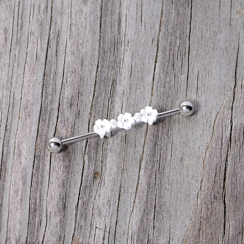 14 Gauge Clear Gem White Flower Industrial Barbell 38mm