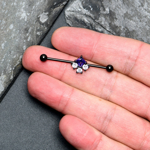 14 Gauge Clear Purple CZ Gem Black Rhombus Riot Industrial Barbell 38mm