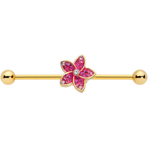 14 Gauge Clear Purple Gem Gold Tone Flower Industrial Barbell 38mm