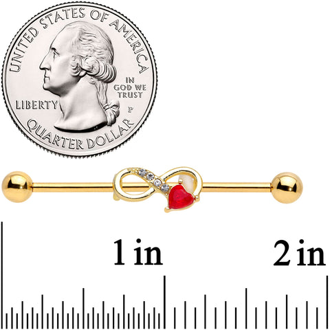 14 Gauge Clear Red Gem Gold Tone Treble Clef Industrial Barbell 38mm