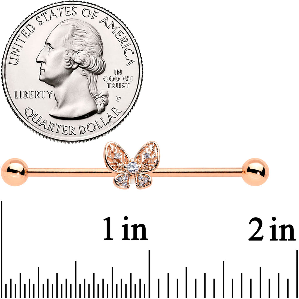 14 Gauge Clear Rose Gold Tone Airy Butterfly Industrial Barbell 38mm