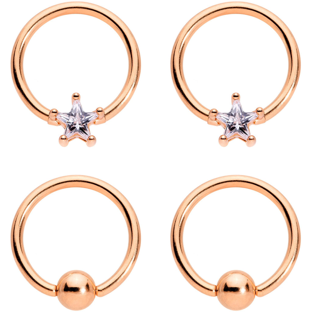 14 Gauge Clear Star CZ Gem Rose Gold Tone Captive Nipple Ring Set of 4