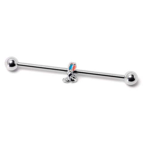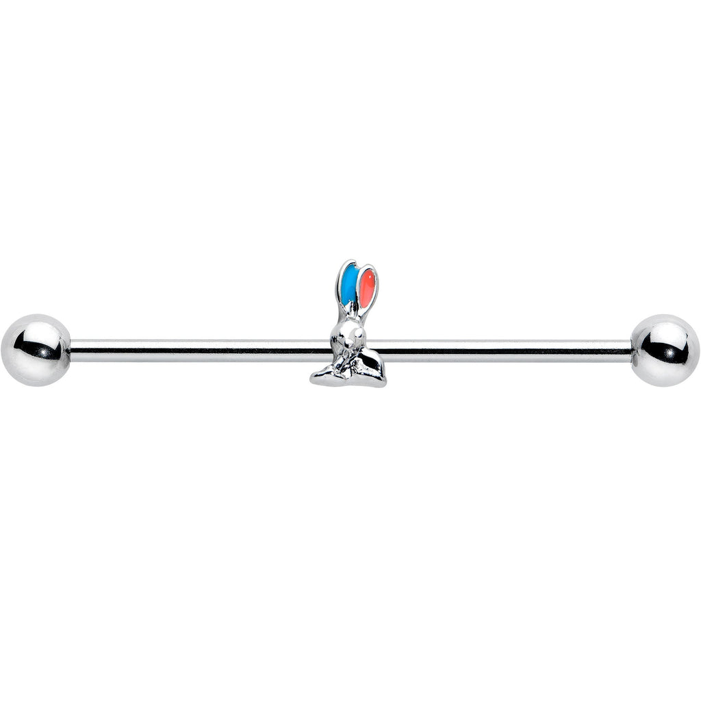 14G Easter Bunny Red Blue Ears Industrial Barbell 38mm