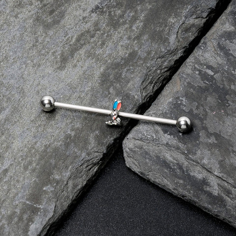 14 Gauge Easter Bunny Red Blue Ears Industrial Barbell 38mm