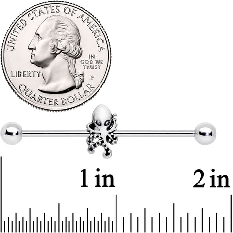 Sharks aren't the only monsters lurking in the ocean! This ancient horror of the seas sees all from a 14 gauge durable 316L surgical grade stainless steel straight barbell. At 1 1/2" long, this moveable octopus charm has got plenty of room to slide back and forth as he waits to slither ashore just in time for Halloween. This terrifying piece will make you want to stay safely on land forever!Specifications
