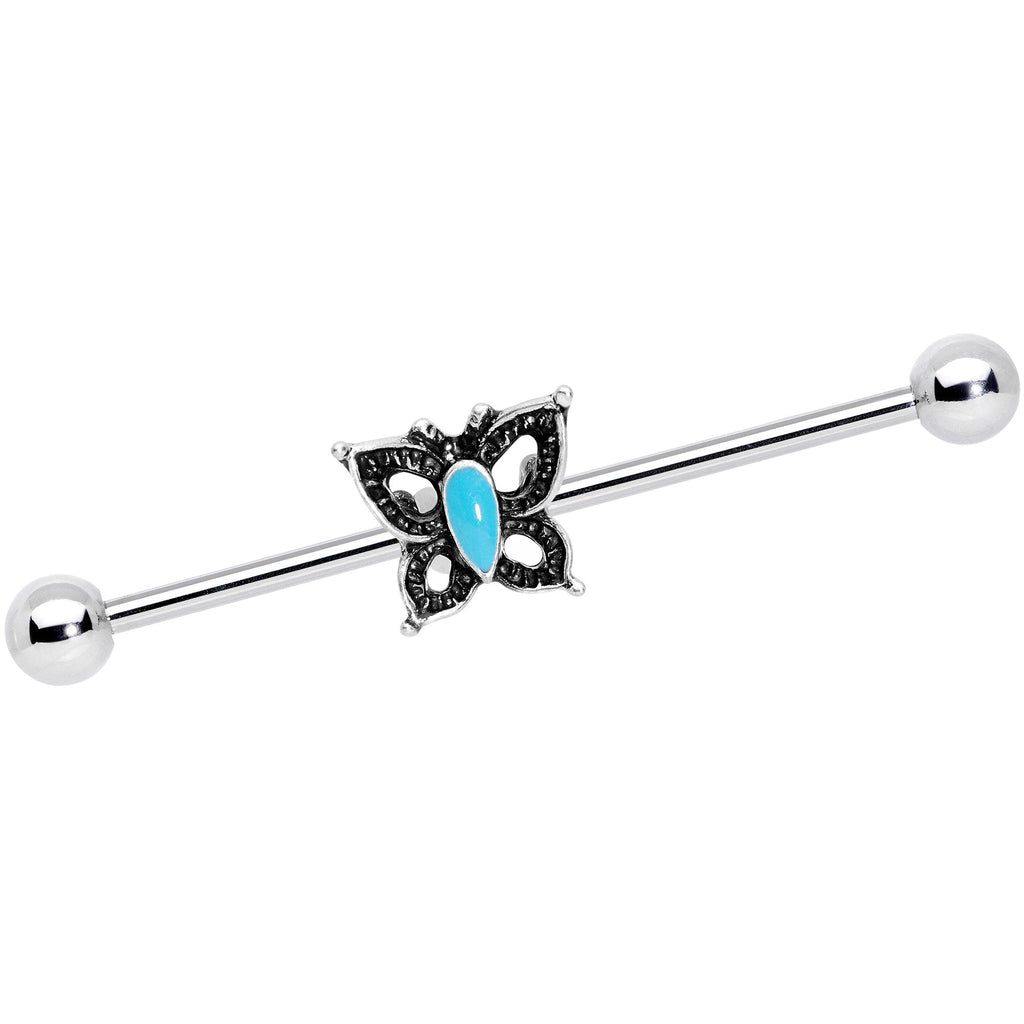 14 Gauge Faux Turquoise Southwest Butterfly Industrial Barbell 38mm