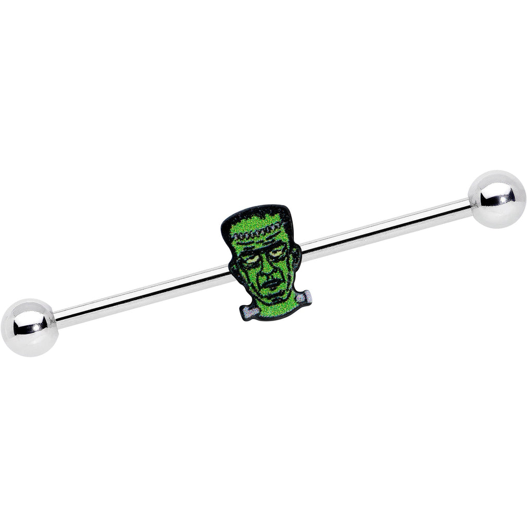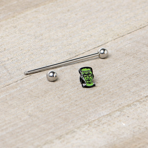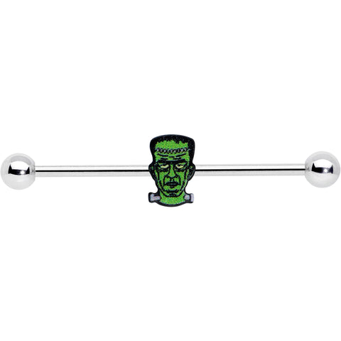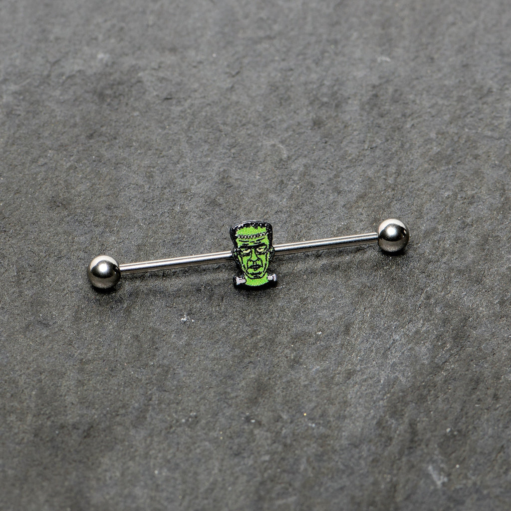 14 Gauge Frankenstein Head Green Glow in Dark Industrial Barbell 38mm
