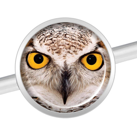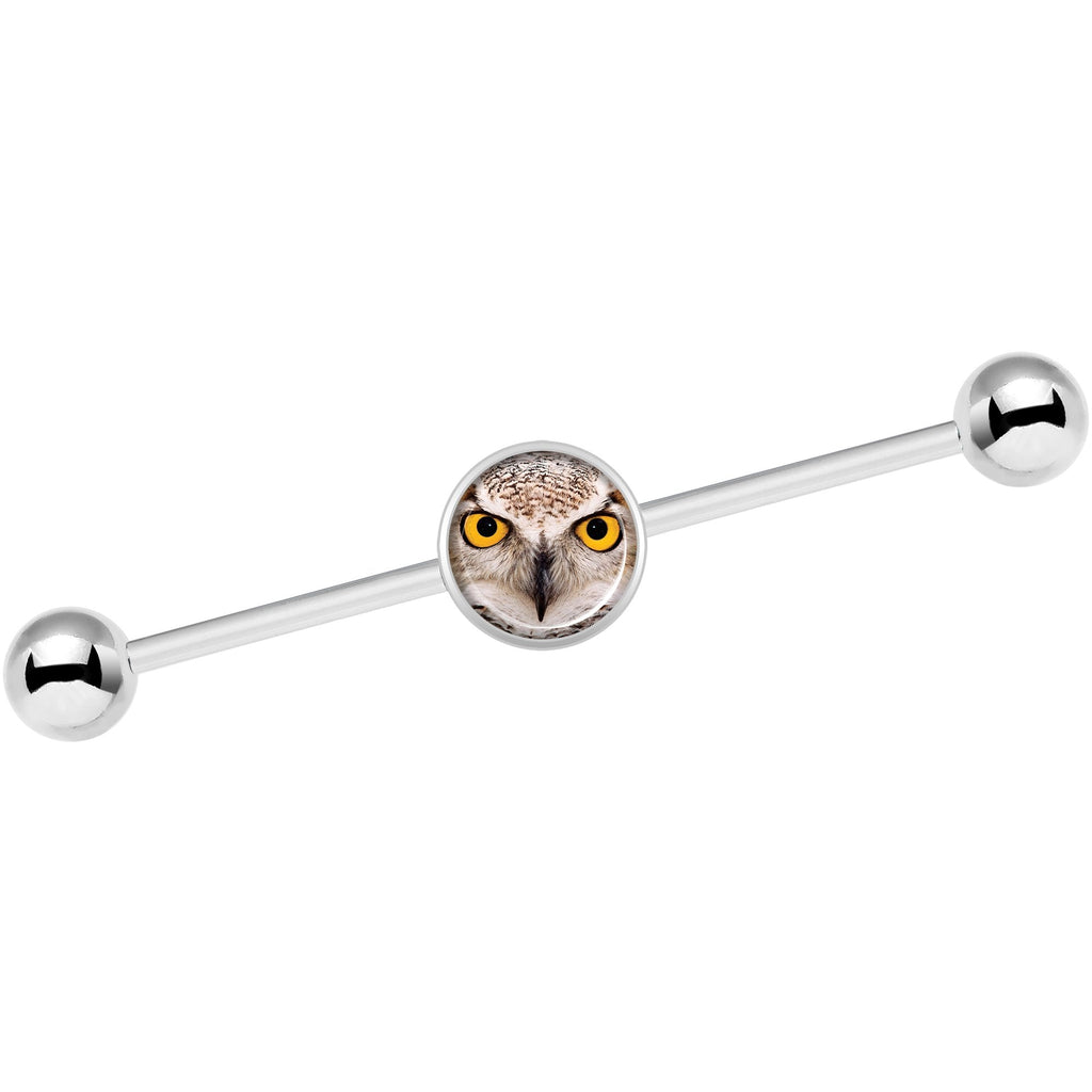 If you love owls then this 14 gauge industrial earring is right for you! Made with a 1.45" durable 316L surgical grade stainless steel straight barbell, this straight barbell jewelry features a nonmoving logo inlay charm and 6mm ball ends.