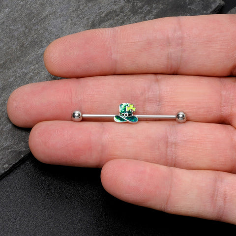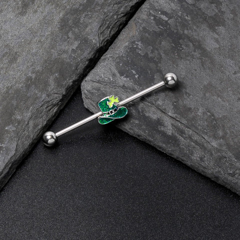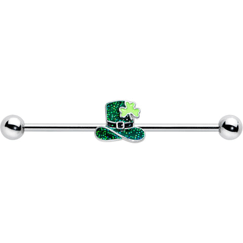 14G Glitter Top Hat Shamrock St Patricks Industrial Barbell 38mm