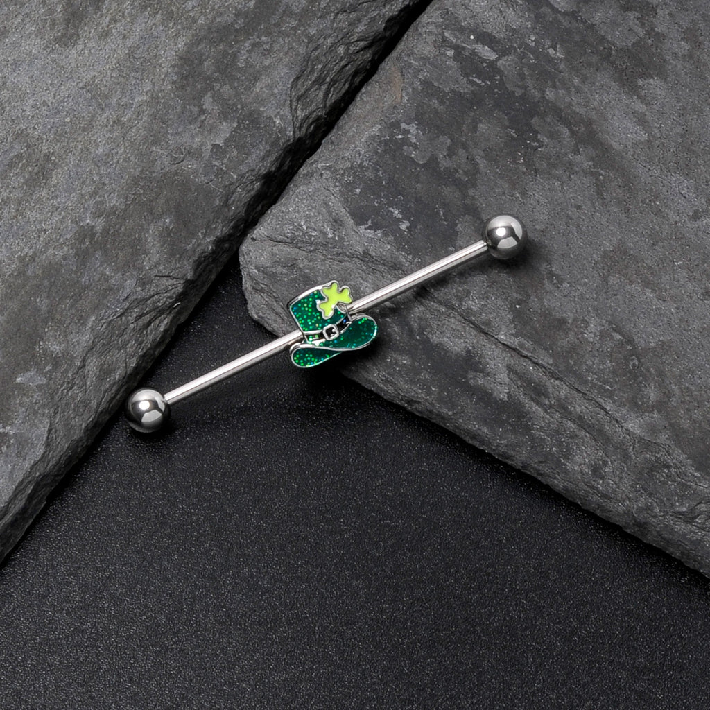 14 Gauge Glitter Top Hat Shamrock St Patricks Industrial Barbell 38mm