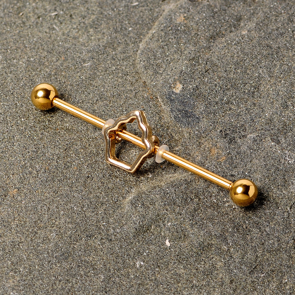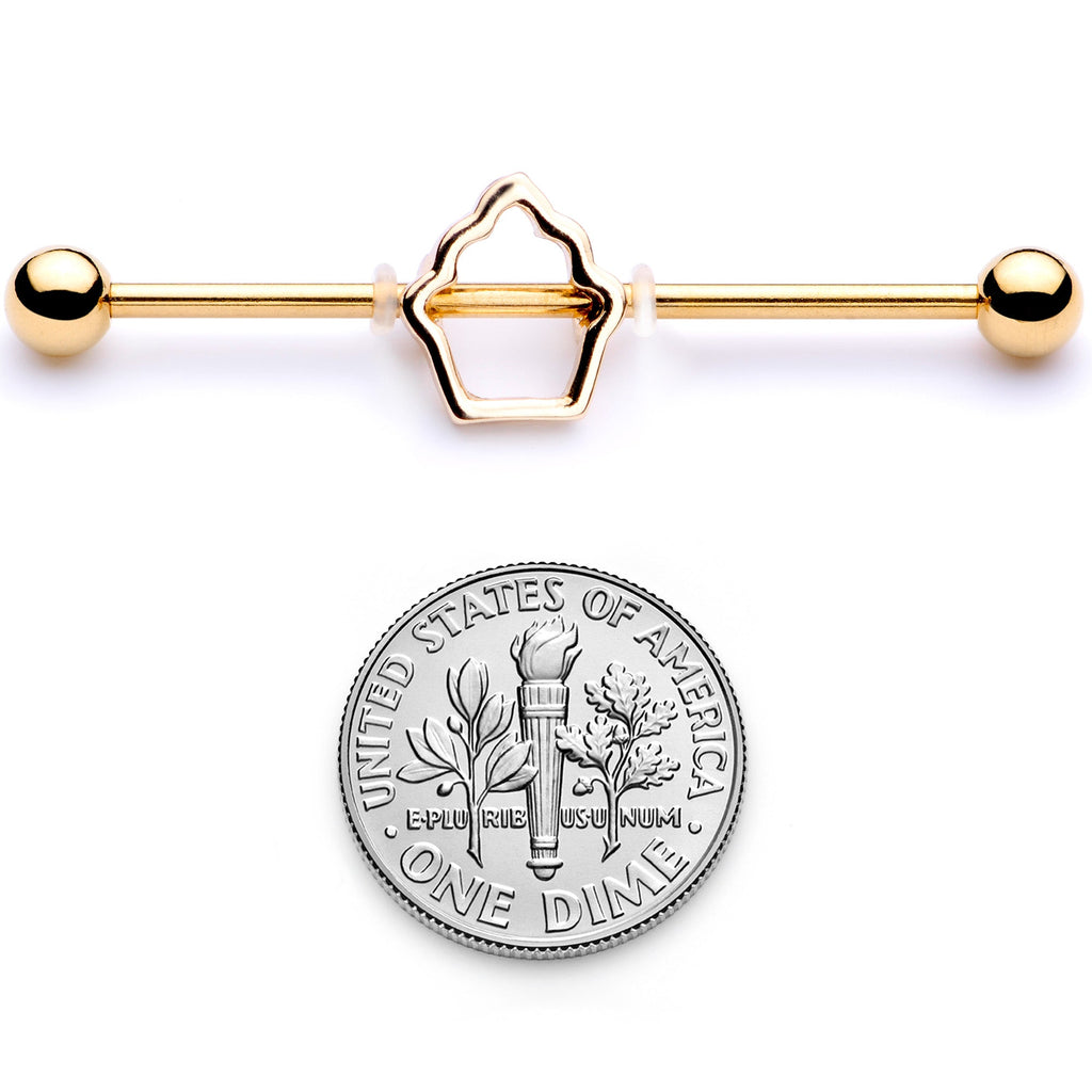 14 Gauge Gold Tone Hollow Cupcake Industrial Barbell 38mm