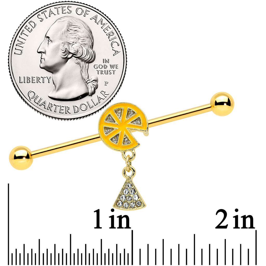 14 Gauge Gold Tone Orange Fruit Dangle Industrial Barbell 38mm