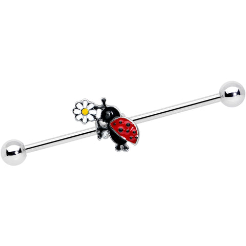 14 Gauge Gold Tone Spike UV Ladybug Industrial Barbell 38mm Set of 3