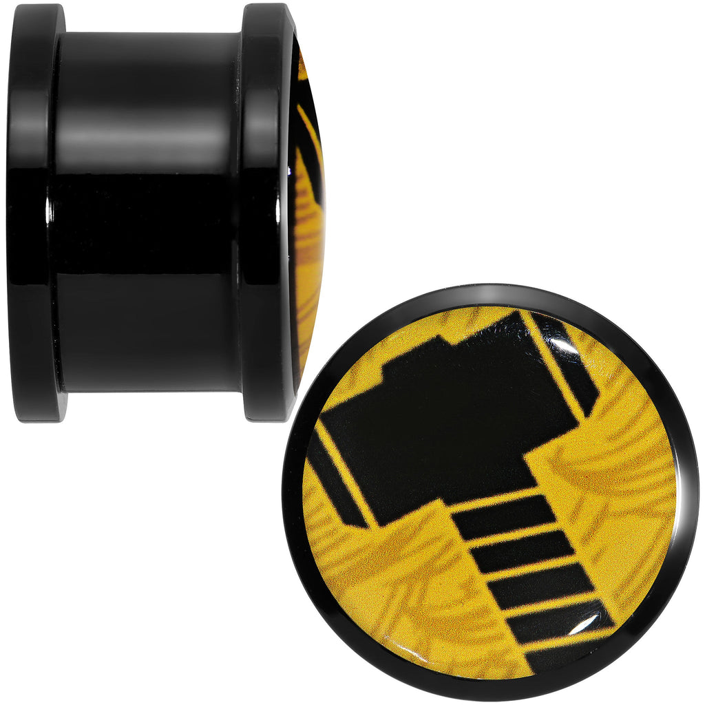 16mm acrylic ear stretcher plugs. Feel the power of the Asgardians with this licensed Marvel Thor hammer ear expander plug Body Jewelry.These acrylic superhero screw fit plugs are sold as a pair of two (2). Thor is from Marvel Comics jewelry. Licensed ca