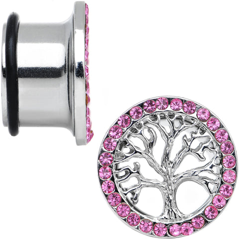 5/8 Pink Gem Stainless Steel Single Flare Tree of Life Plug Set