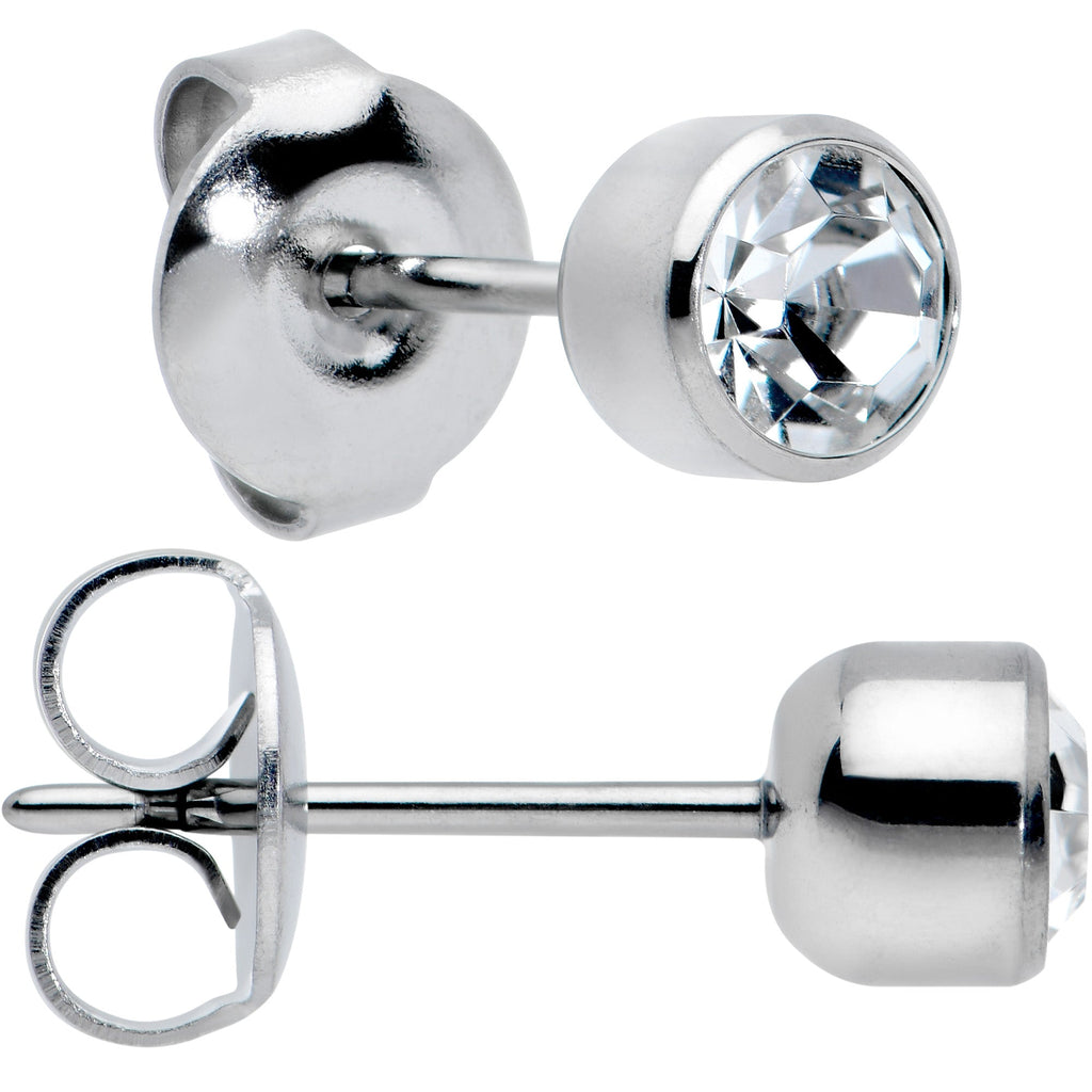 Hypoallergenic jewelry for sensitive skin5mm Cubic Zirconia Bezel G23 Titanium Post Stud Earrings