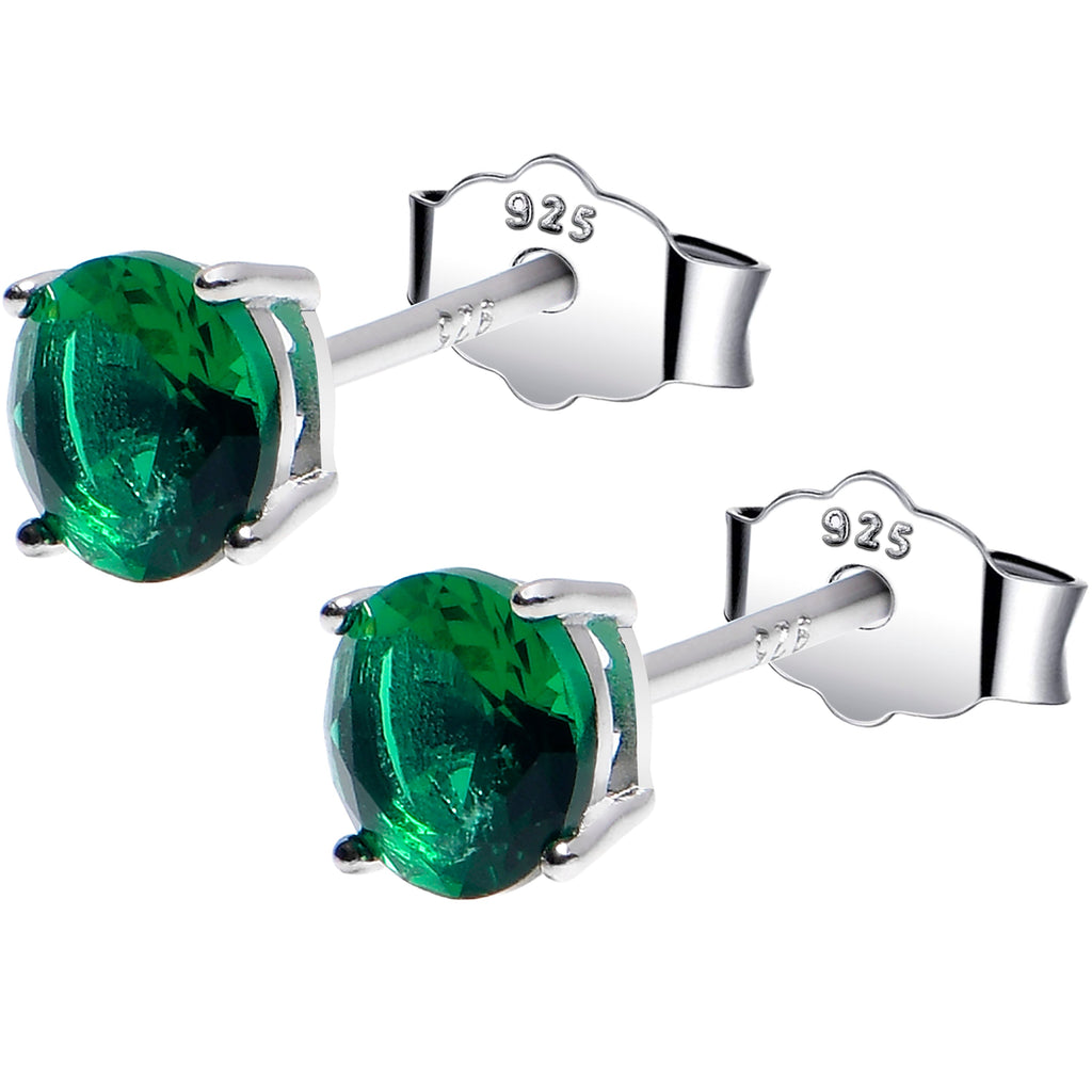 5mm CZ 925 Sterling Silver May Birthstone Stud Earrings