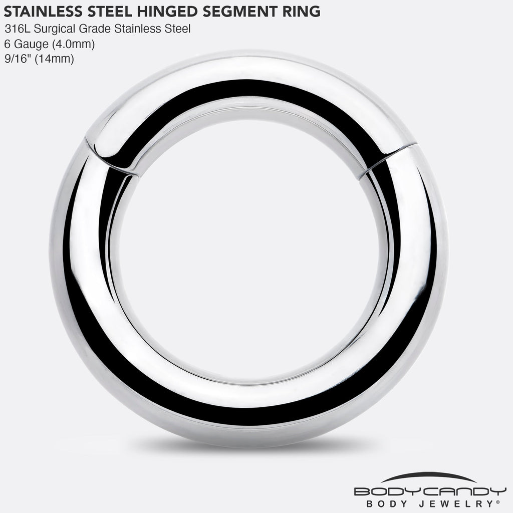 6 Gauge (4.0mm), 9/16" (14mm), Precision Hinged Closure, 316L Surgical Grade Stainless Steel