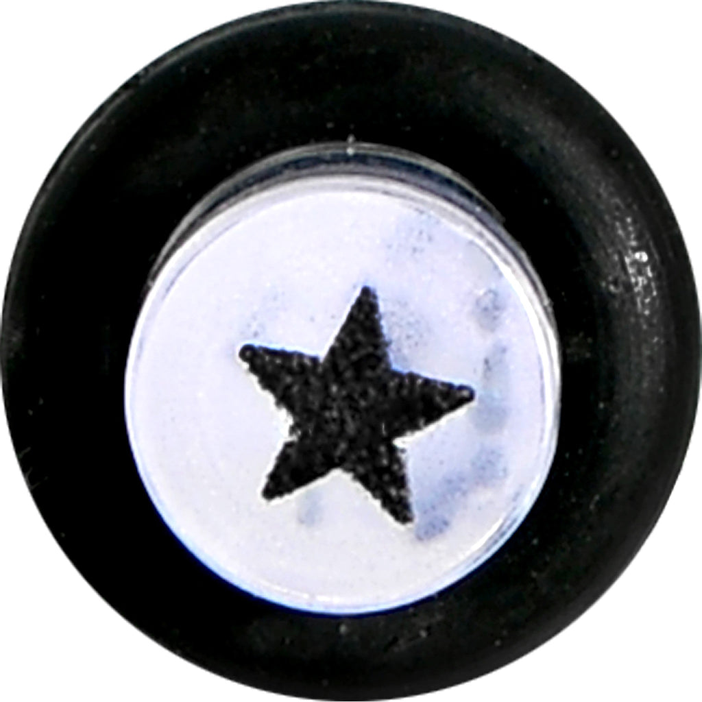 Hypoallergenic jewelry for sensitive skin.Sold individually, Please purchase a quantity of 2 for a pair. 6 gauge glitter straight taper. Clear acrylic taper ear plug with black star pattern. Star taper Body Jewelry./font>