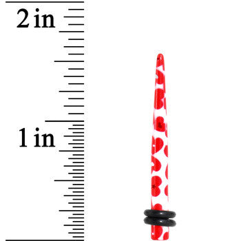 4mm ear taper. This white acrylic ear plug features multiple red hearts. Heart ear expender featuring two rubber O-rings. Body piercing ear taper sold individually.