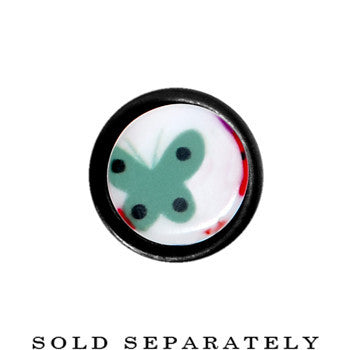 Hypoallergenic jewelry for sensitive skin.4mm ear taper. This white acrylic ear plug features colorful butterflies. Butterfly ear expender featuring two rubber O-rings. Body piercing ear taper sold individually.