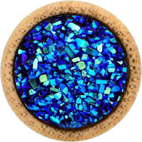 7/16 Blue Druzy Stone Wood Saddle Plug Set