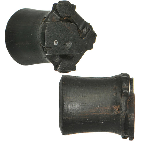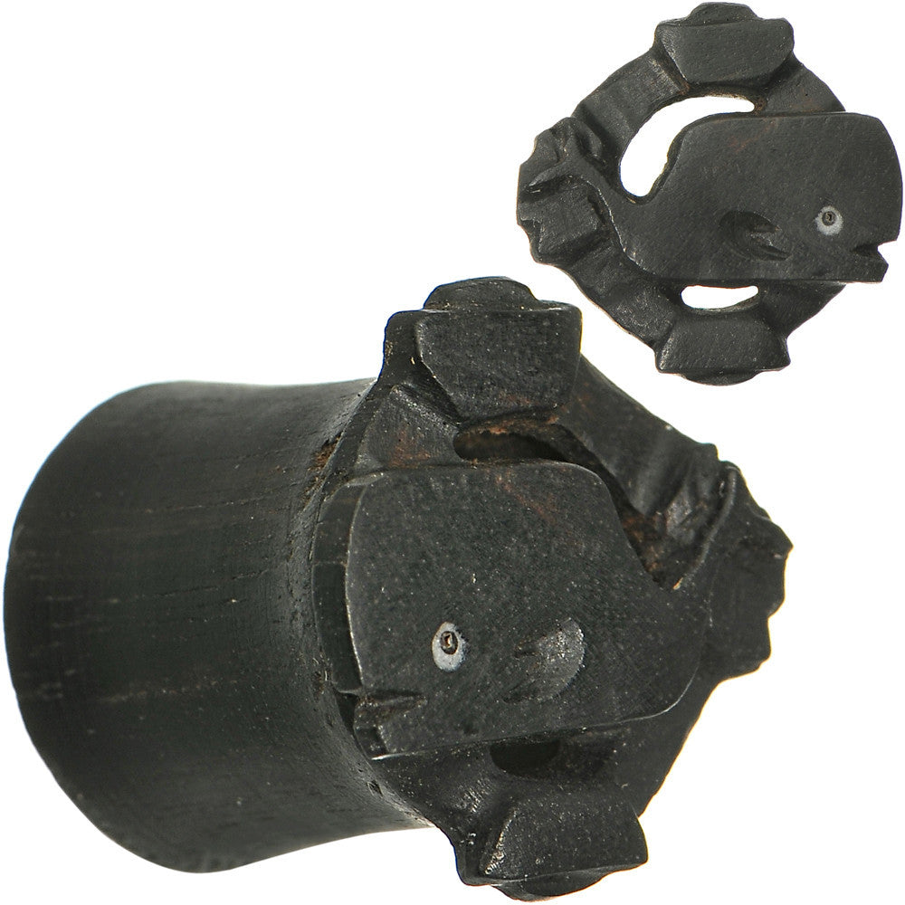 Urban Star organic ear plugs, 11mm left and right double flare tunnel ear plug set. These cheerful whale ear stretchers are created from natural black areng wood. Pierced ear expander body jewelry sold as a pair of two. Animal themed Urban Star jewelry is handcrafted by highly experienced artisans.
